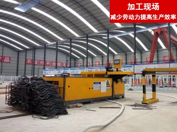 格柵拱架作為隧道拱架的一種常用于公路鐵路隧道,礦山巷道施工的初期支護中,而 8 字筋是格柵拱架中的重要組成,其形狀復雜, 數(shù)量巨大,加工難度大,工人勞動強度高。濟寧市旭輝數(shù)控機械有限公司一直致力于數(shù)控鋼筋彎箍機的研制,我們針對 8 字筋的特殊形 狀和要求,在原基礎上加以改進,讓原本復雜的加工變得更加簡單、標準、節(jié)能。我們深入加工現(xiàn)場了解傳統(tǒng)加工的諸多難處, 在設計當中加入現(xiàn)代化制造的先進理念和元素,那就是精益化生產(chǎn), 各個工序的產(chǎn)品沒有堆積(不占地方),產(chǎn)品不需要人力運轉運輸, 讓我們生產(chǎn)的產(chǎn)品意義上的流動起來,讓我們的生產(chǎn)現(xiàn)場空間更好的利用,整個生產(chǎn)線整潔和諧,企業(yè)形象得到根本上的改善。